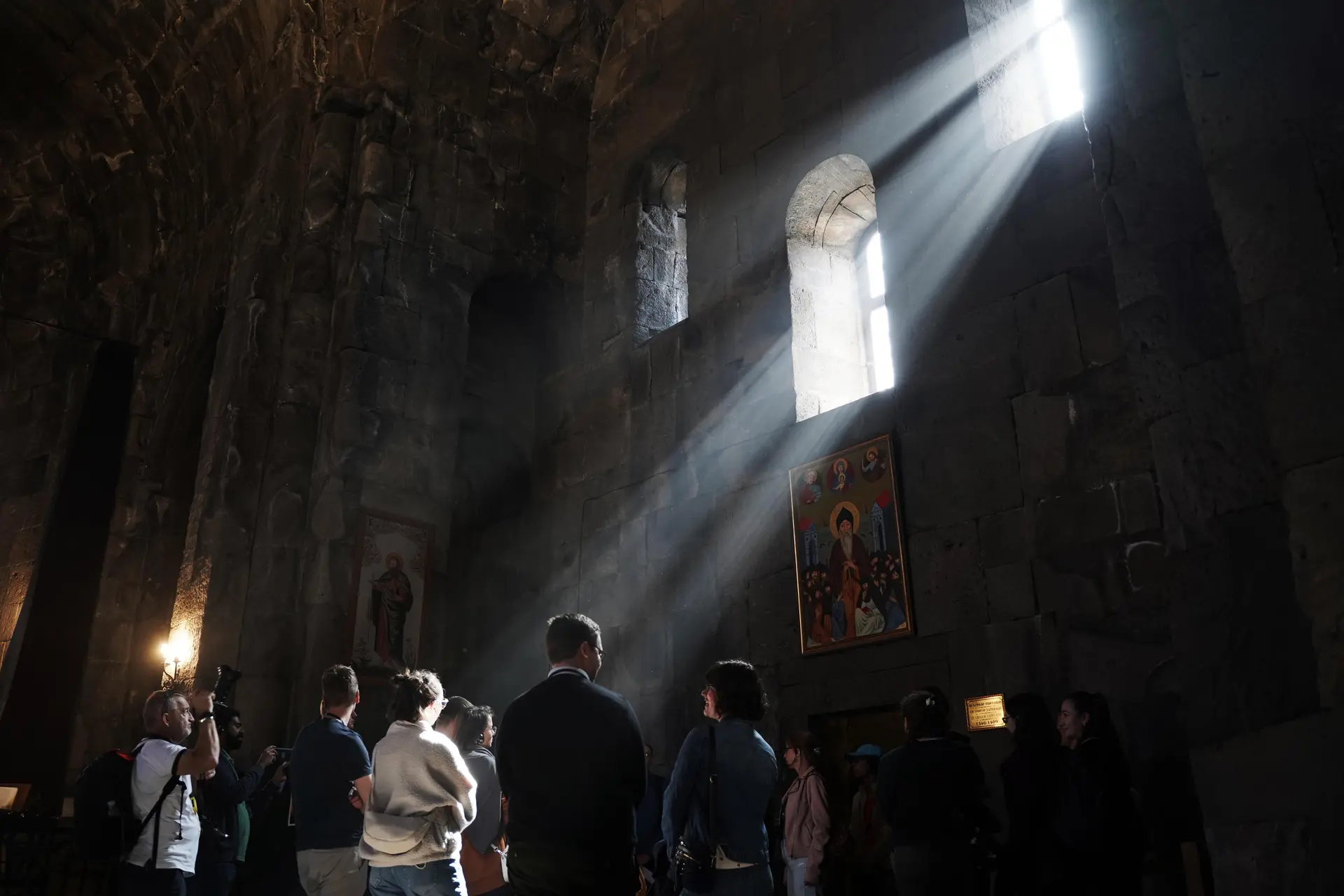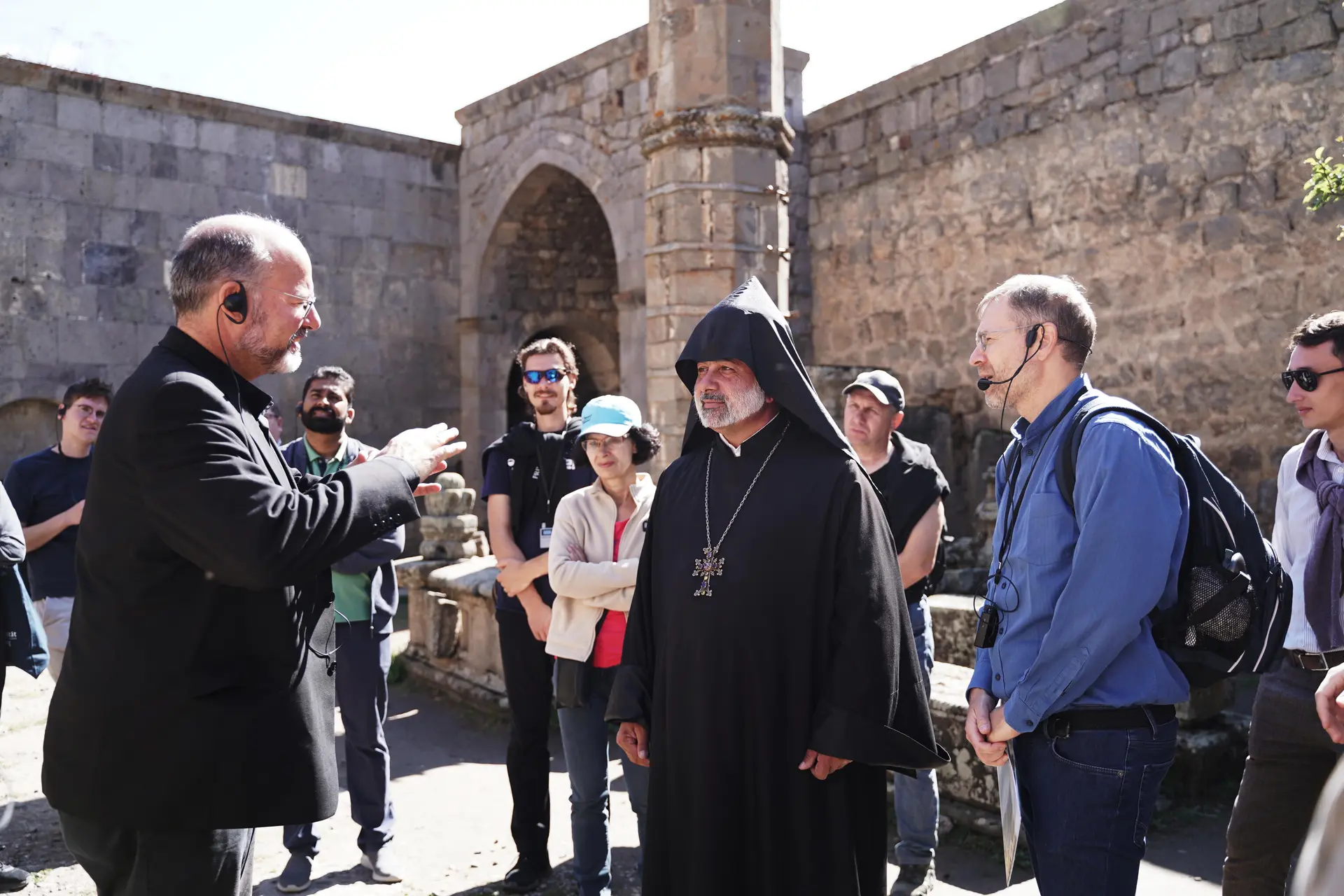 Im Kloster Tatev begegnete die Gruppe Abt Sahag, der von seiner Herkunft aus Berg‑Karabach erzählte und berichtete, wie er infolge der militärischen Auseinandersetzungen seine Heimat verlassen musste. Seine persönliche Geschichte veranschaulichte auf eindrückliche Weise, wie stark die Gegenwart des Landes noch immer von politischen Spannungen und Vertreibungserfahrungen geprägt ist.