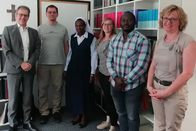 On Wednesday, 12.06.19, a special round of professorships took place for the staff of the Chair of Didactics of Religious Education, Catechetics and Religious Education. Guests were Sister Phionah Akankwasa and Jude Jjuuko, both students of the Uganda Martyrs University, together with Thomas Schwab, member of the staff of the Department for Innovation in Education and Knowledge Transfer of the KU.