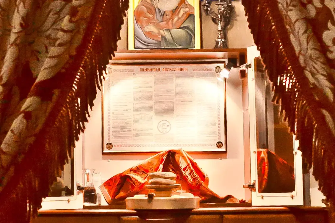Die Proskomidie, also die Vorbereitung der Heiligen Gaben für die Göttliche Liturgie, wird an einem Rüsttisch im nördlichen Altar(raum) vollzogen. Dies kann ein einfacher Tisch, in größeren Kirchen auch ein eigener abgeschlossener Raum (Proskomidiar(ium) ) sein.