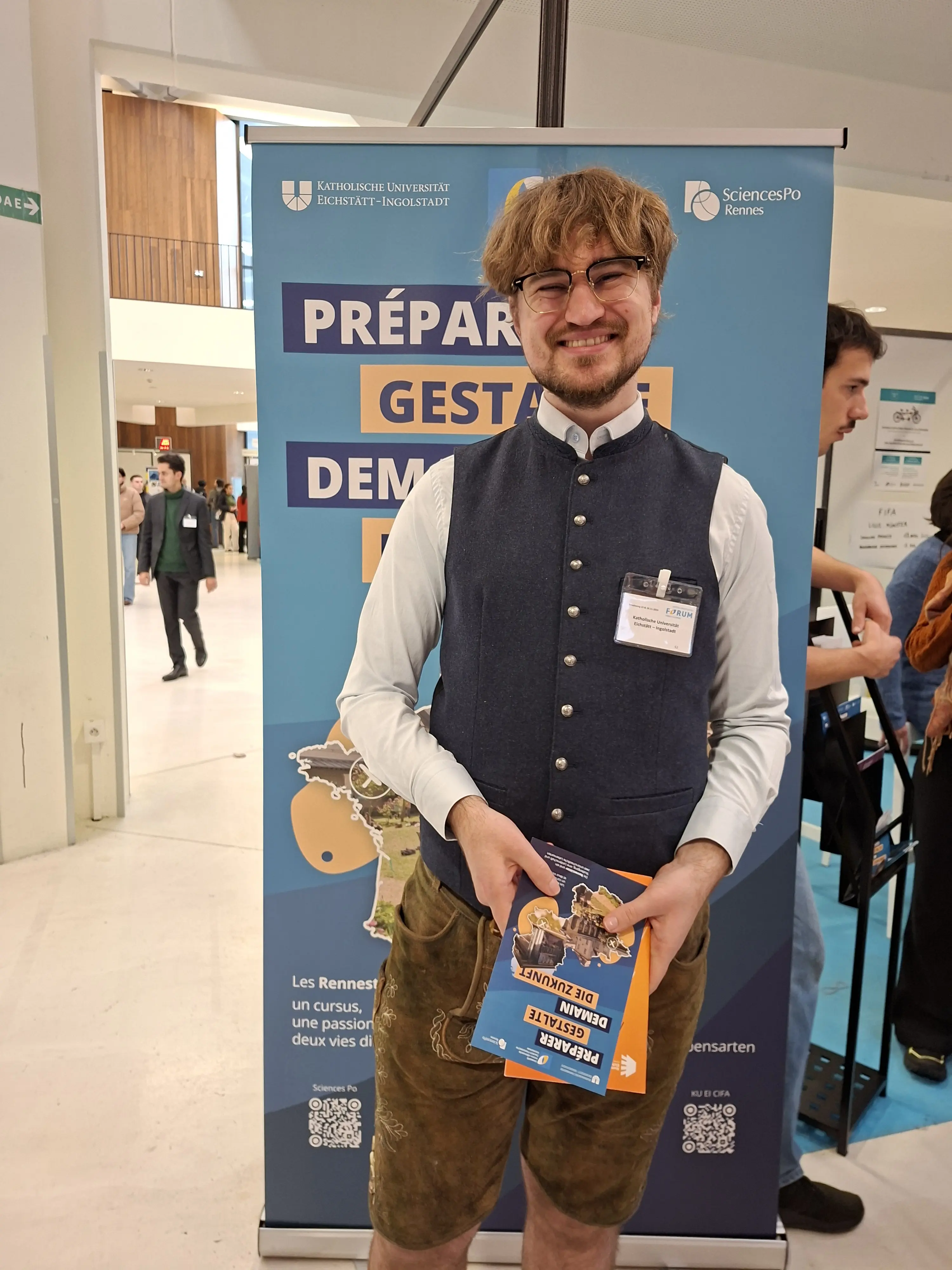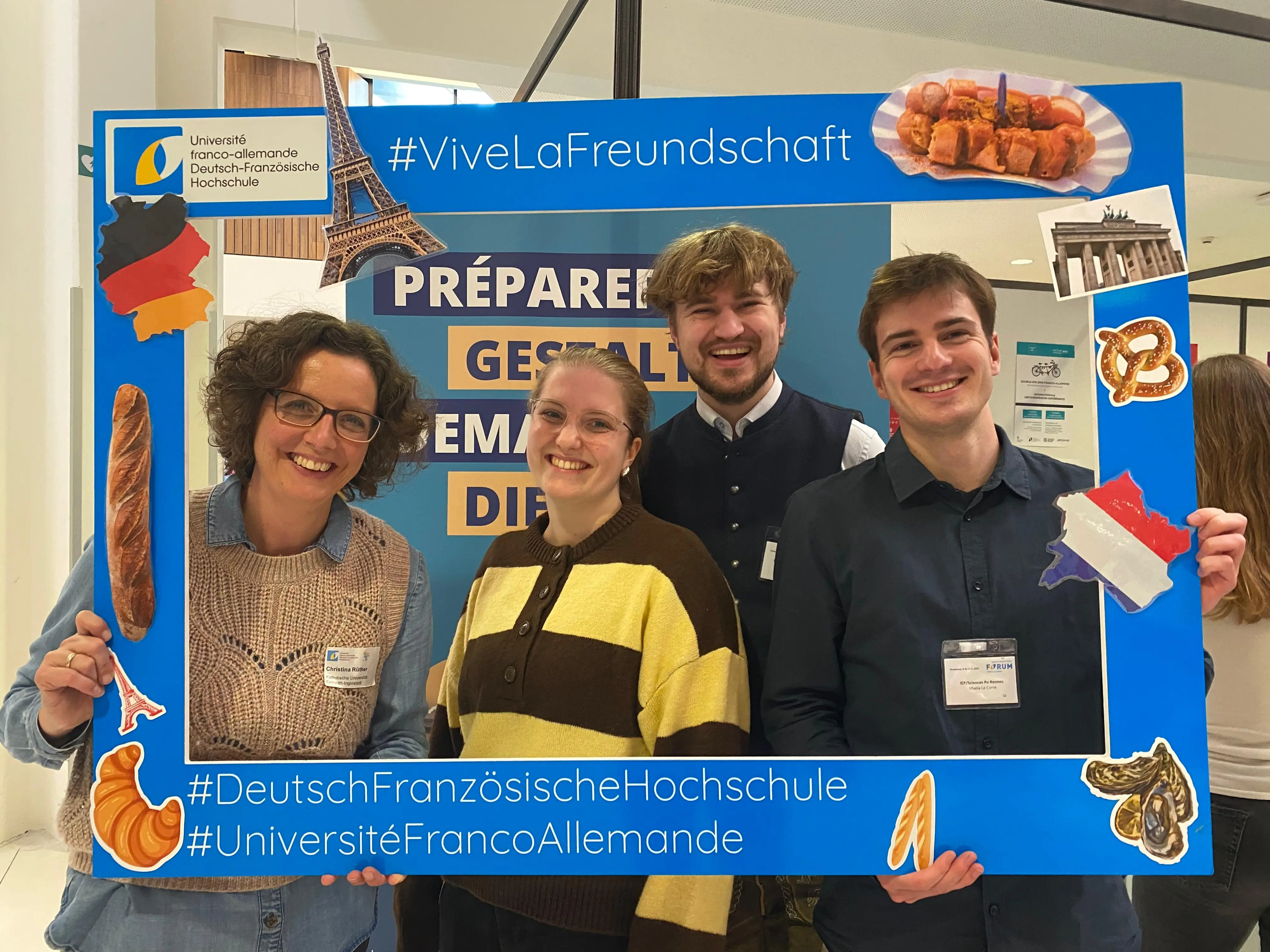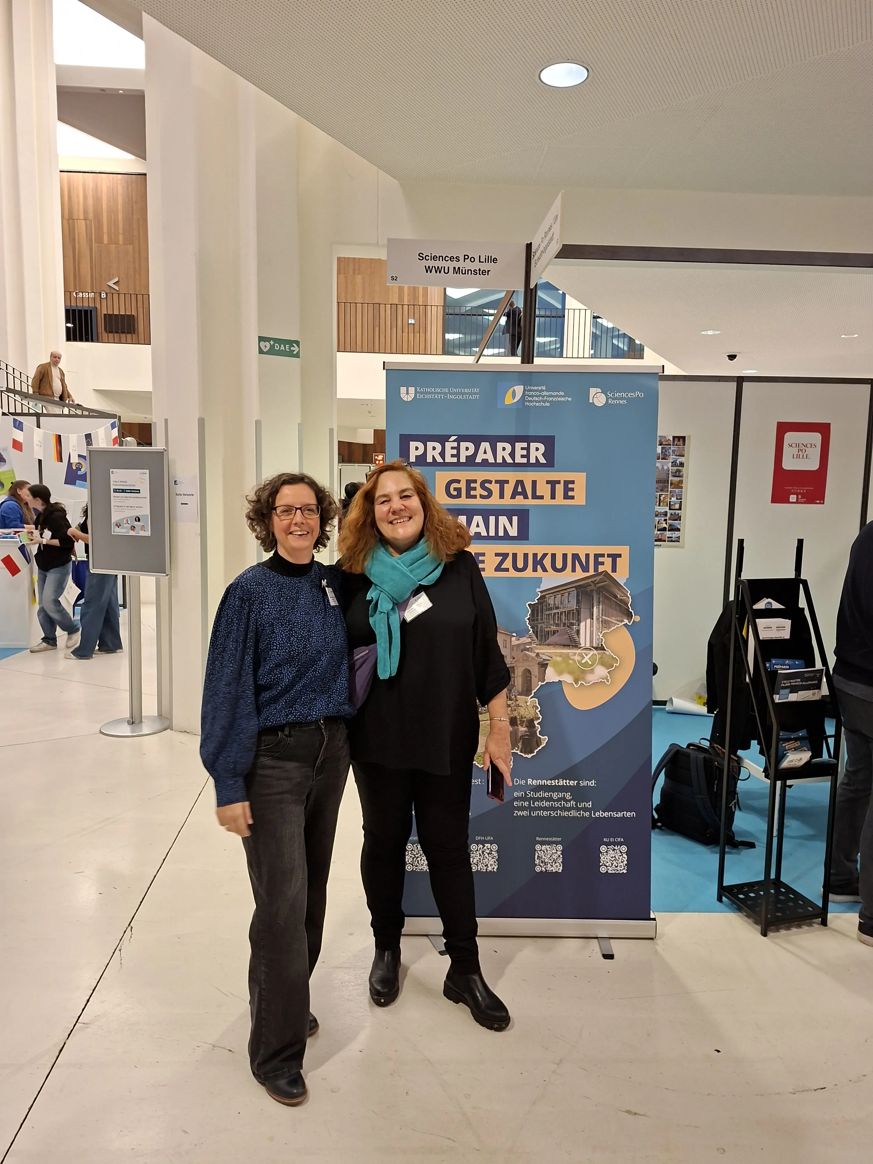 Der Deutsch-Französische Studiengang hat im November 2025 beim Deutsch-Französischen Forum in Straßburg teilgenommen. Das Forum ist die zentrale Anlaufstelle für alle, die einen deutsch-französischen Studiengang studieren möchten. Im Jahr 2025 verzeichnete das Forum 8000 Besucherinnen und Besucher sowie 226 Aussteller. Neben Marta Iglesias Casal (Sciences Po Rennes) und Dr. Christina Rüther (KU) waren auch Studierende und Absolventinnen und Absolventen vor Ort.