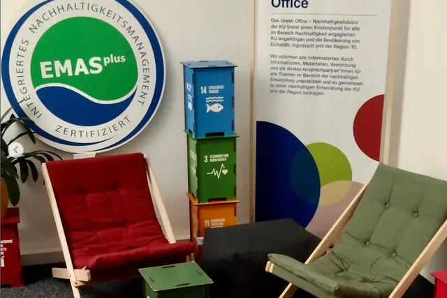 Das Green Office – Nachhaltigkeitsbüro der KU bietet einen Knotenpunkt für alle im Bereich Nachhaltigkeit engagierten KU-Angehörigen und die Bevölkerung von Eichstätt, Ingolstadt und der Region. Das Green Office bietet Informationen und Materialien zur Nachhaltigkeit, Raum zum Austausch und für Projektideen, tatkräftige Unterstützung bei der Planung und Umsetzung von nachhaltigen Veranstaltungen und bei der Vermittlung zu Expert/innen. Zudem unterstützt das Büro die Umsetzung des Nachhaltigkeitsgesamtkonzeptes sowie des jährlichen Nachhaltigkeitsprogrammes der KU.
