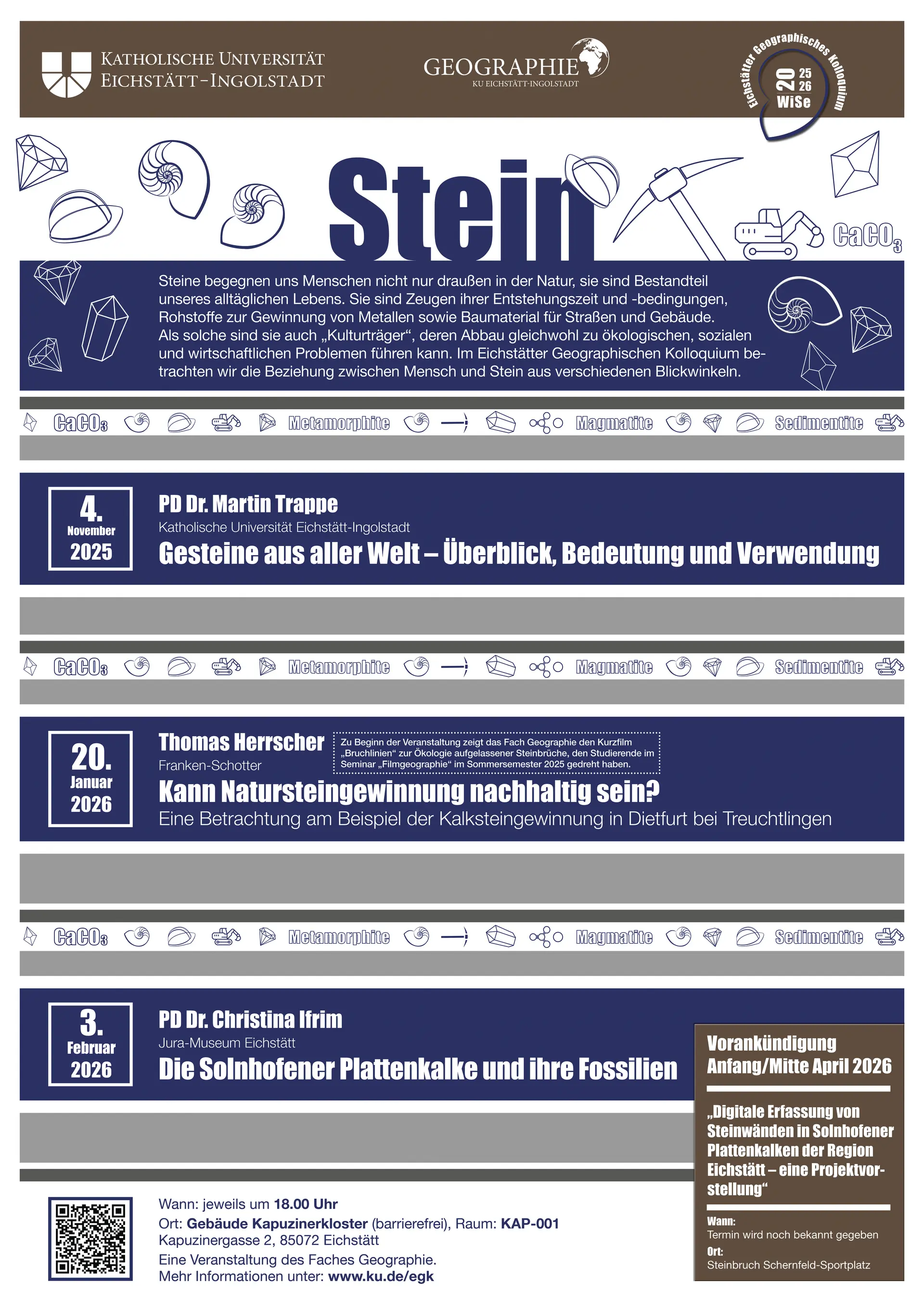Herzliche Einladung zum diesjährigen Eichstätter Geographischen Kolloquium unter dem Motto "Stein"