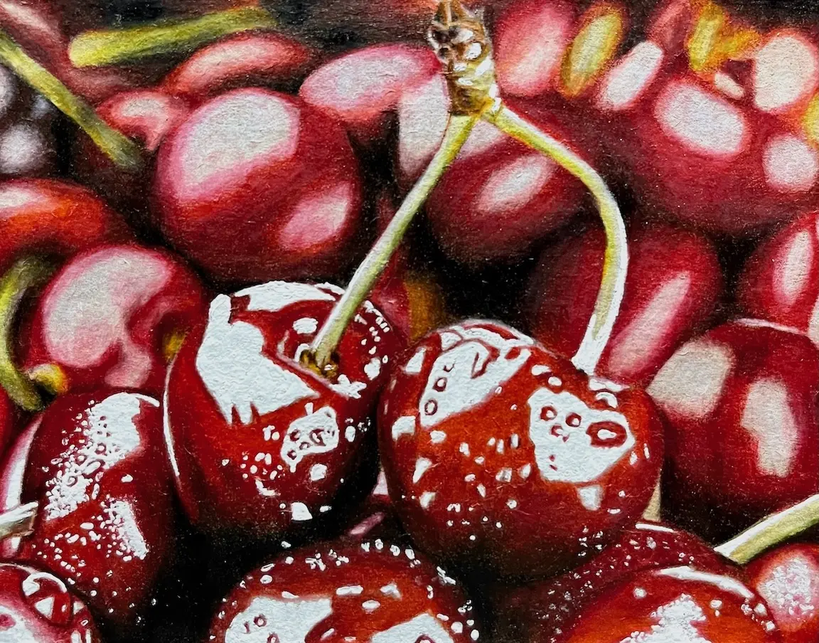 03, Marietta Hofbauer, Kirschen, 2025, Buntstift auf Papier, 10 cm x 15 cm
