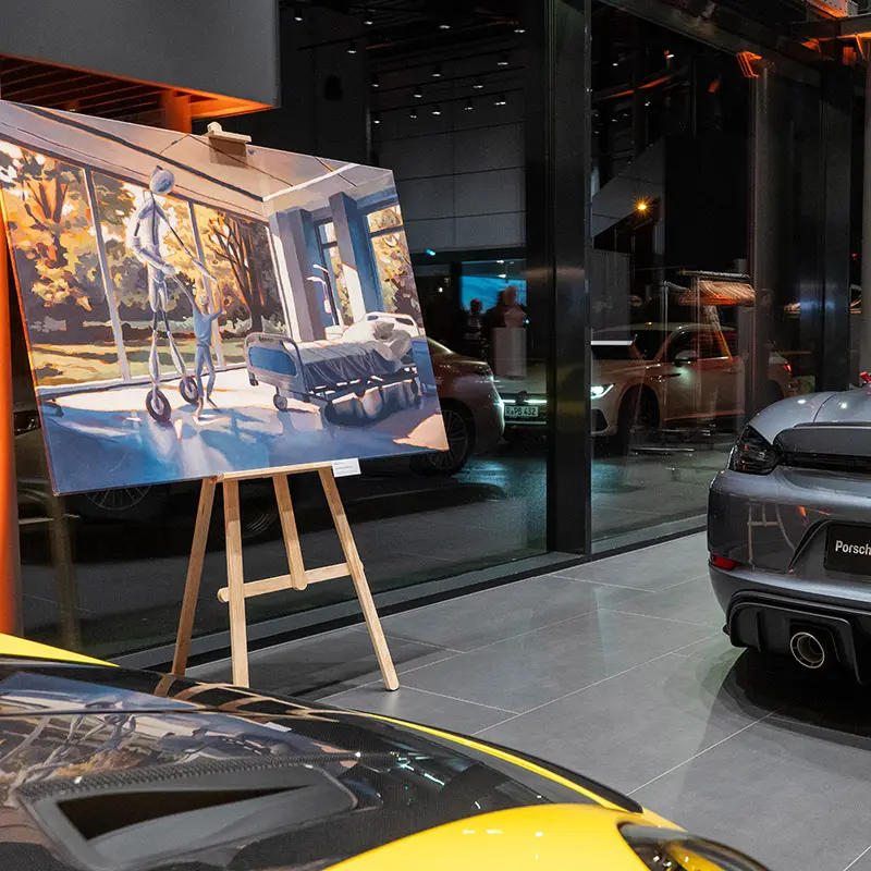 Ausstellung „Kunst trifft Technik“ im PORSCHE-Zentrum Regensburg 2025/26.
