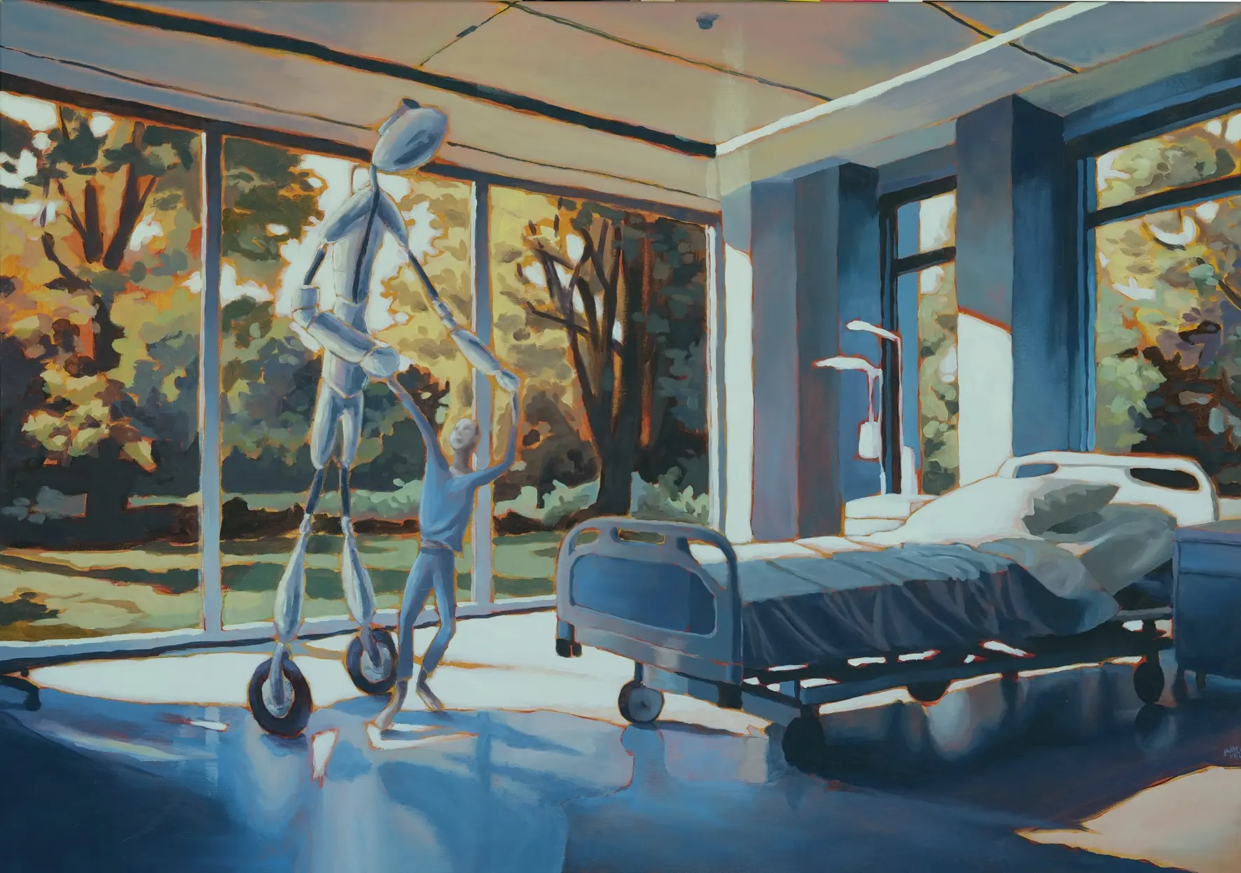 In der Wissenschaft gibt es die Annahme, dass ein verheilter Oberschenkelknochenbruch bei einem Lebewesen das erste Anzeichen für das Entstehen einer Zivilisation sei. Ein Tier, das sich diesen Knochen bricht, kann alleine in der Wildnis nicht mehr überleben. So zeigt ein verheilter Oberschenkelbruch, dass sich jemand um das Lebewesen gekümmert hat und bei ihm geblieben ist, bis es wieder gesund war. Schlussendlich kam durch diese Fürsorge auch menschliche Gesellschaft und Zivilisation zustande. Doch kann sich unsere Gesellschaft heute noch um alle kümmern, die dringend Hilfe bräuchten? Wohin wir auch blicken, sind Pflegestationen unterbesetzt und Krankenhäuser überfüllt. Oft begegnen wir Zuständen, in denen man eigentlich gar nicht gesund werden kann. Könnte die Technik uns hierbei helfen? Könnten wir durch die Hilfe von Maschinen, Künstlichen Intelligenzen und Robotern wieder mehr Raum für Menschlichkeit schaffen? Vor allem da, wo sie am meisten gebraucht wird?