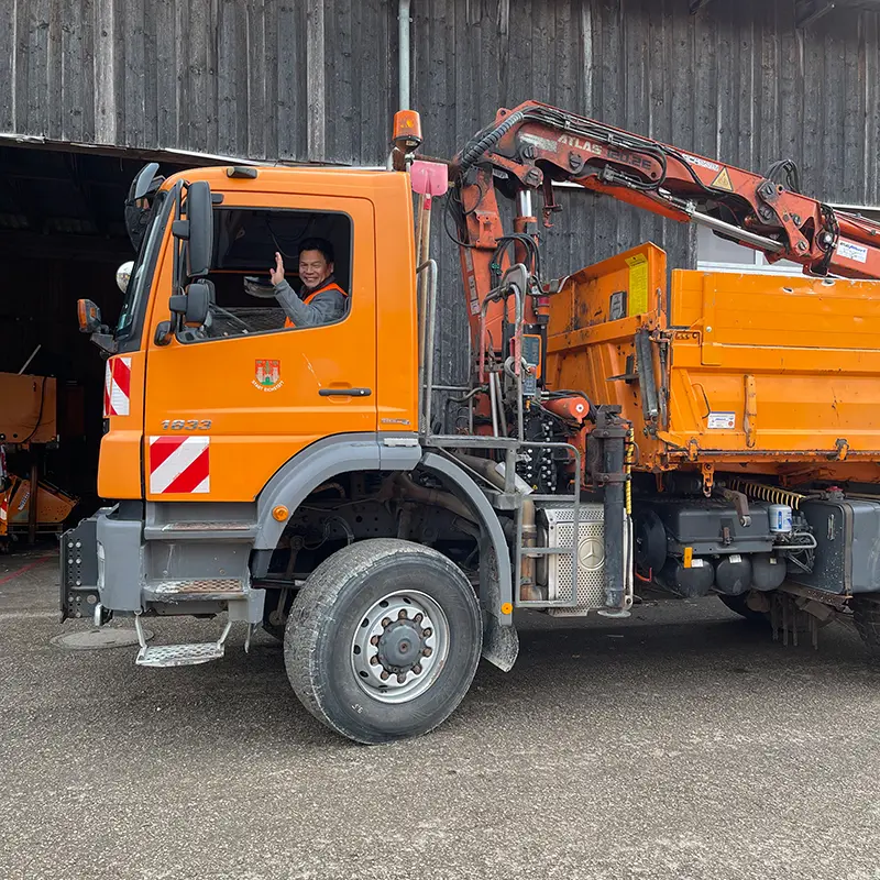 Das Orange greift die Warnschutzkleidung der Bauhof-Mitarbeitenden auf und steht zugleich für Energie, Lebensfreude und Tatkraft. Es motiviert zum Handeln. Das dezente Grau schafft dazu einen ruhigen, professionellen Ausgleich.