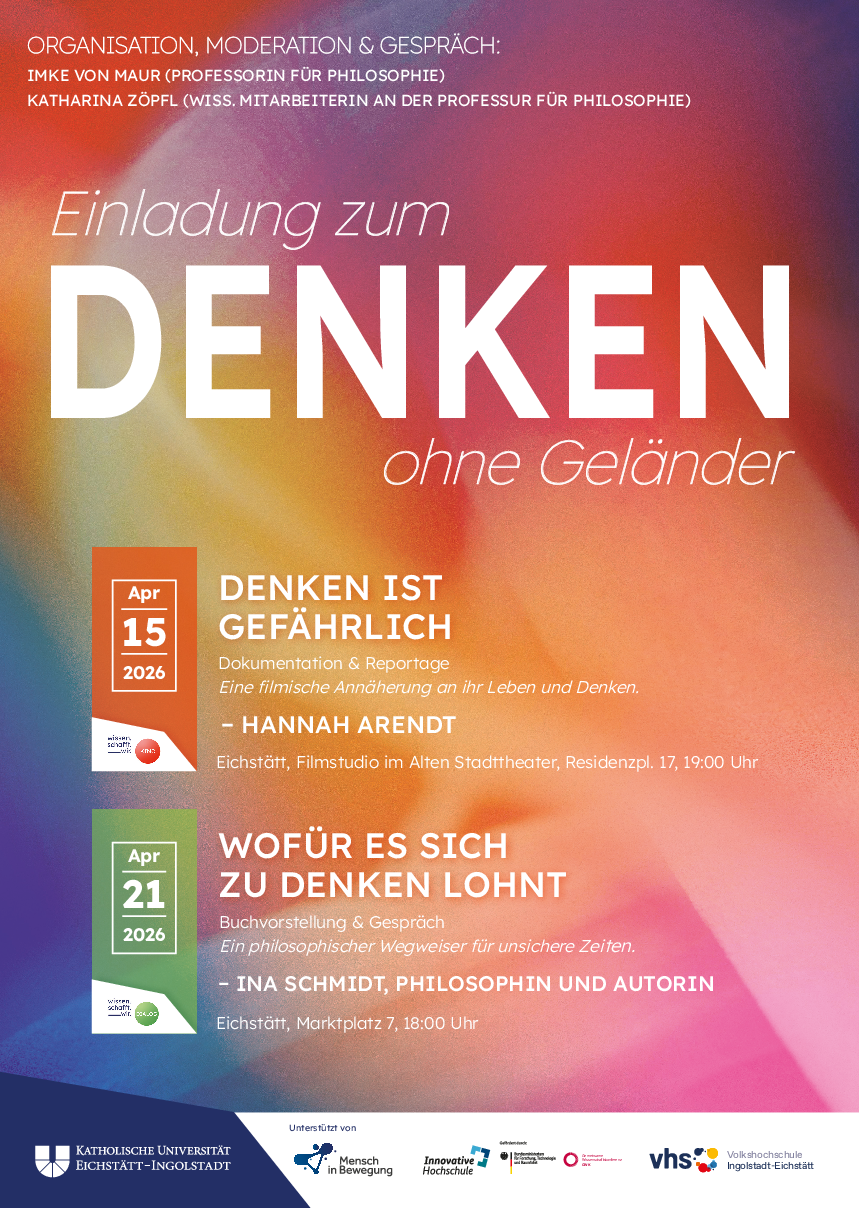 Im anschließenden Gespräch vor Ort stehen Prof. Dr. von Maur und Katharina Zöpfl vom Lehrstuhl für Philosophie für Fragen und weitere Vertiefung zur Verfügung.