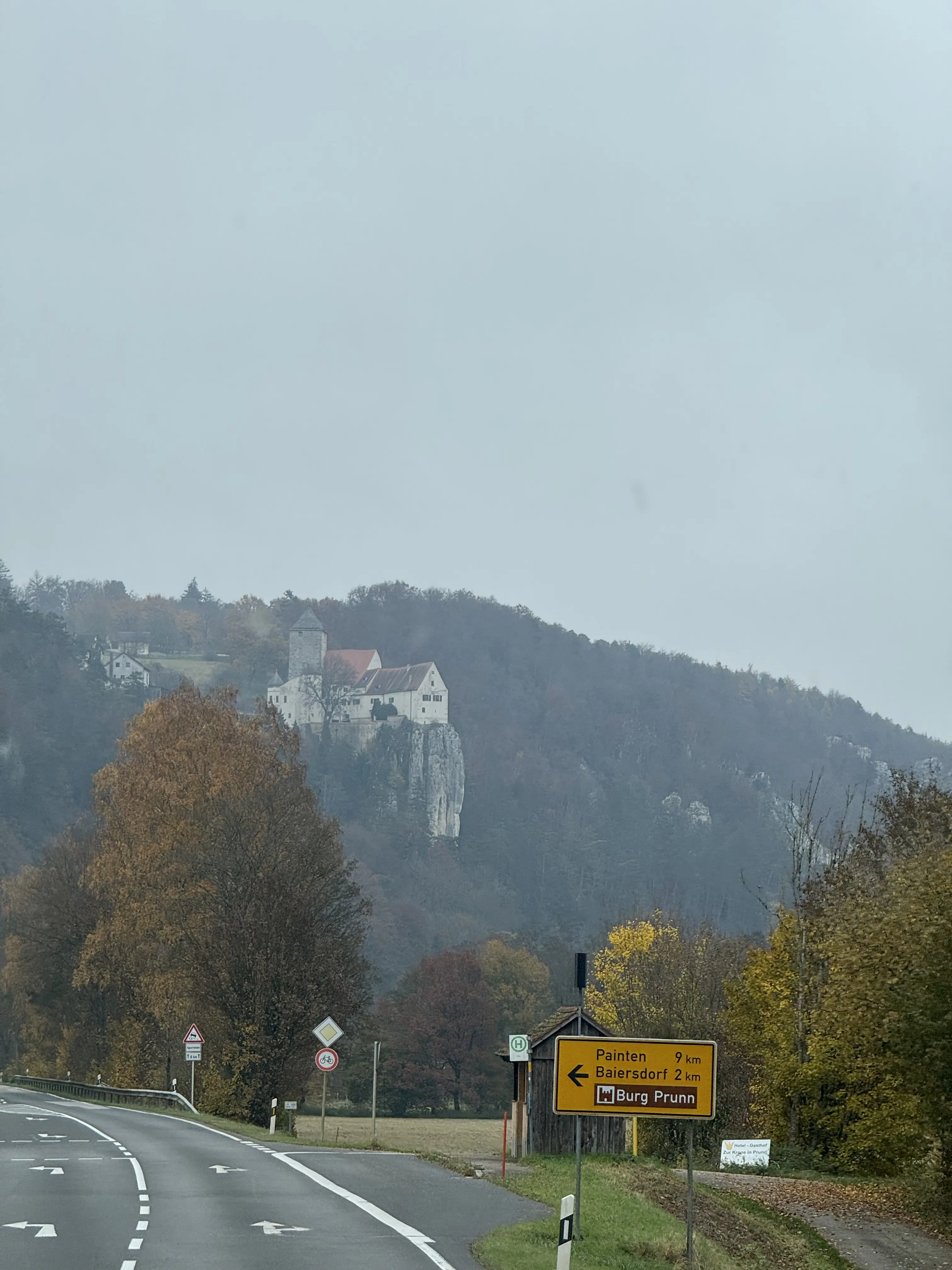 Mythisch im Nebel ruhend empfing das Altmühltal bei Schloßprunn die Exkursionsgruppe und offenbarte, wie gemalt, auf seinen schroffen Steilhängen prangend, die Burg Prunn. Die Teilnehmenden kamen in den Genuss einer Burgführung durch Anton Schmailzl. Die Begeisterung, die sich der elaborierte Burgführer trotz jahrelanger Routine bewahrte, verlieh den Einblicken in das mittelalterliche Monument eine heitere Lebendigkeit. Ergänzt wurde die Führung durch Beiträge der Studierenden und Dozent:innen, welche einen Bezug zu den Textanalyse-Seminaren herstellten.