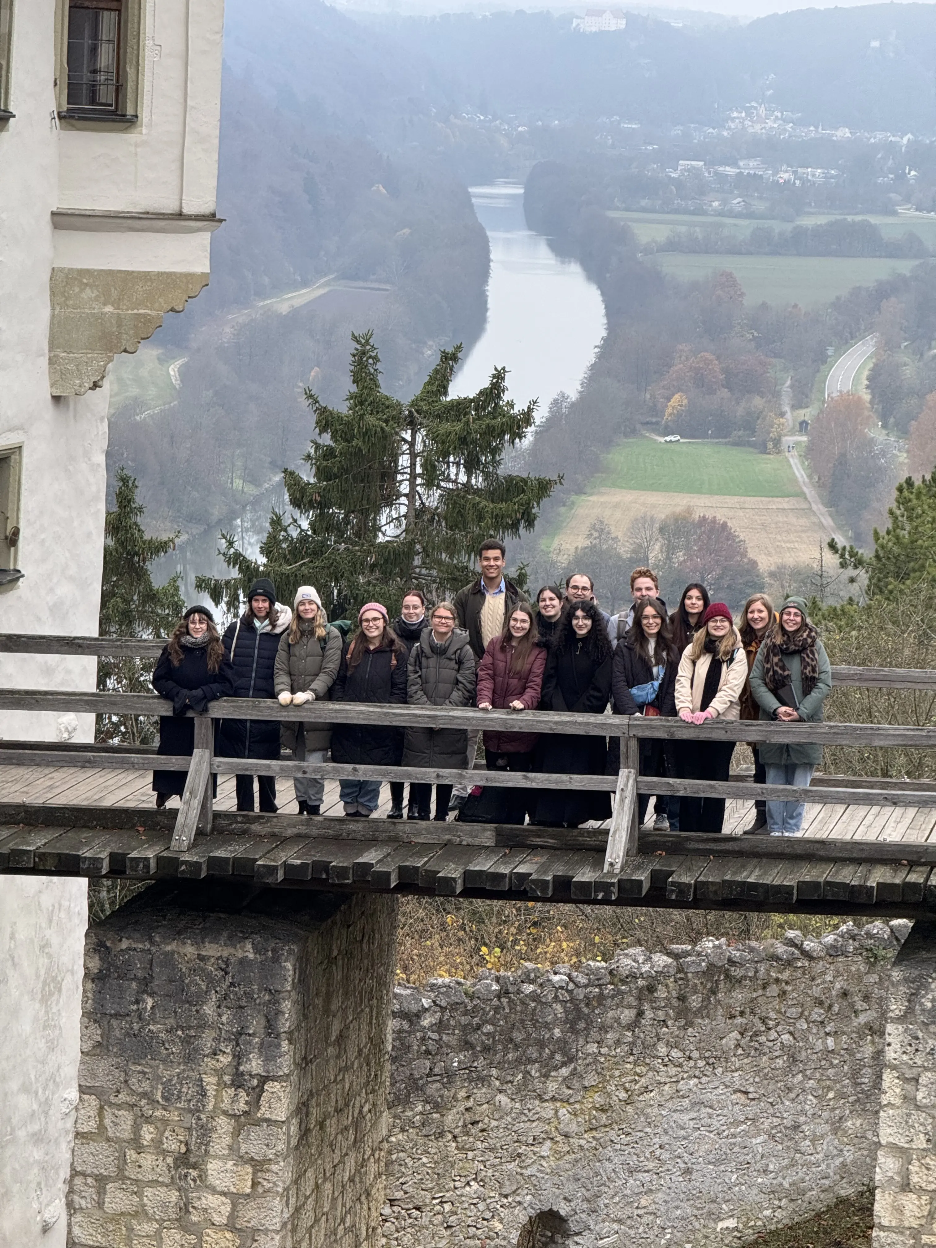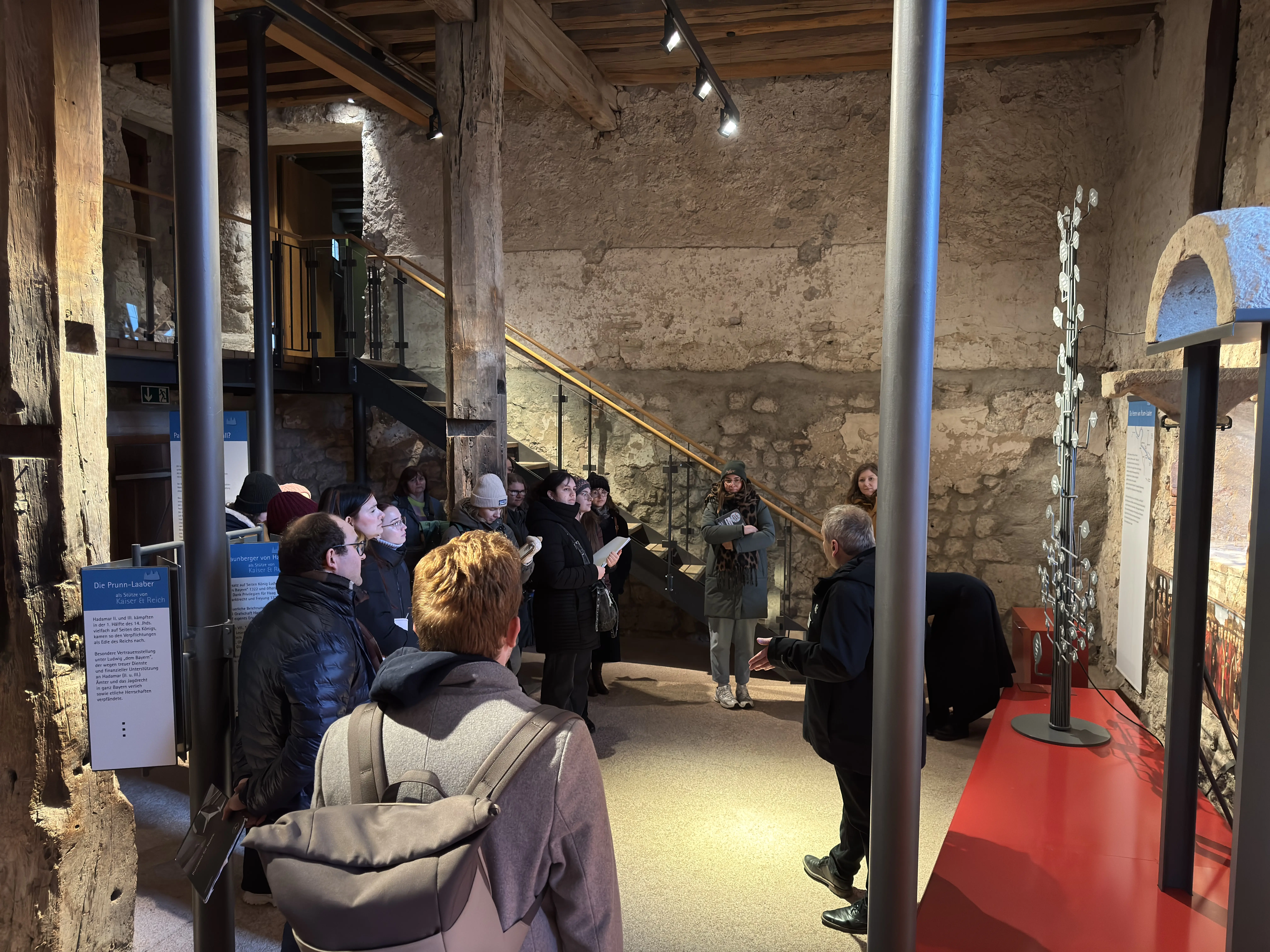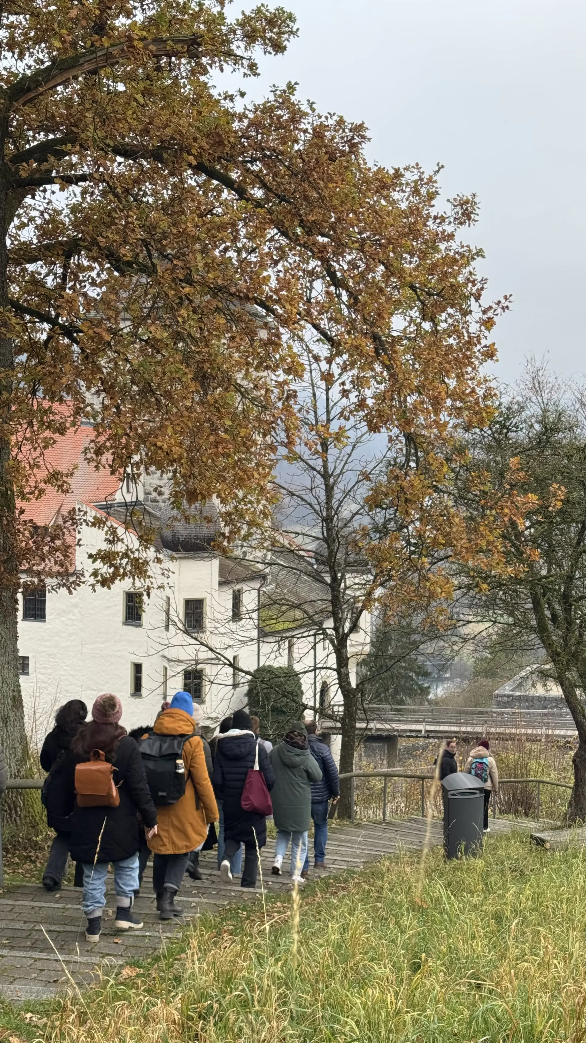 Dozierende des Lehrstuhls und Teilnehmer:innen der beiden ÄdL Textanalyse-Seminare zu Nibelungenlied und Minnesang besuchten am 7. November die Burg Prunn.