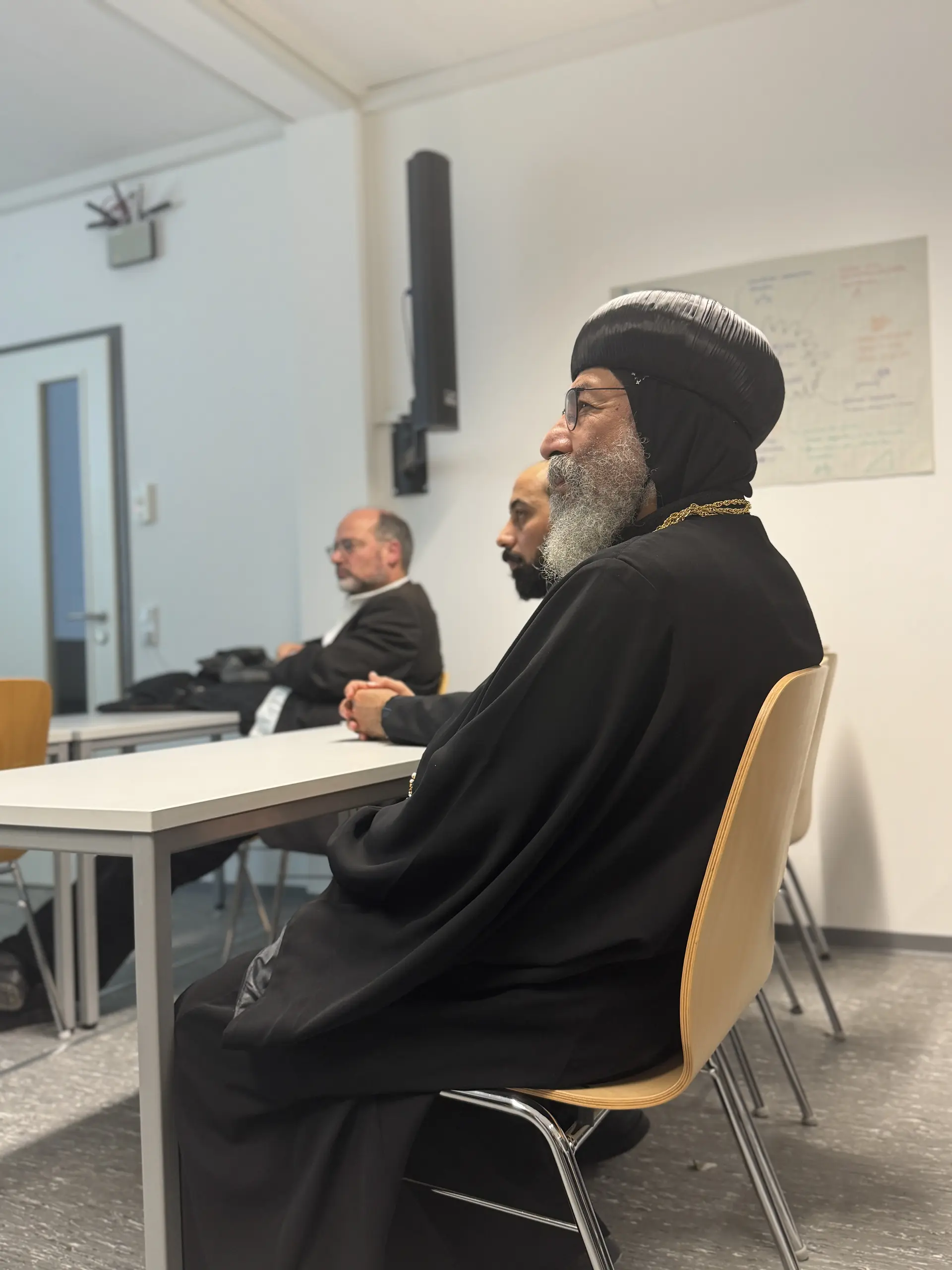 Während seines Besuchs in Eichstätt fand zudem ein intensiver Austausch mit dem Team des Lehrstuhls für Theologie des Christlichen Ostens statt, bei dem verschiedene Perspektiven für eine vertiefte zukünftige Zusammenarbeit erörtert wurden. Ein besonderer Schwerpunkt lag dabei auf der Planung eines gemeinsamen Drittmittelprojekts, das sich der wissenschaftlichen Erschließung und digitalen Katalogisierung der Handschriften der koptisch-orthodoxen Diözese von Mallawi widmen soll. Der umfangreiche Bestand von über 500 Manuskripten, der bereits im Rahmen eines früheren Projekts der Forschungsstelle Christlicher Orient vollständig digitalisiert wurde, stellt eine bislang nur in rudimentären Ansätzen ausgewertete Quelle von hohem kirchen-, liturgie- und theologiegeschichtlichem Wert dar. Ziel des geplanten Projekts ist es, diesen Schatz systematisch zu erschließen, kodikologisch und inhaltlich zu beschreiben sowie über digitale Forschungsinstrumente nachhaltig zugänglich zu machen.