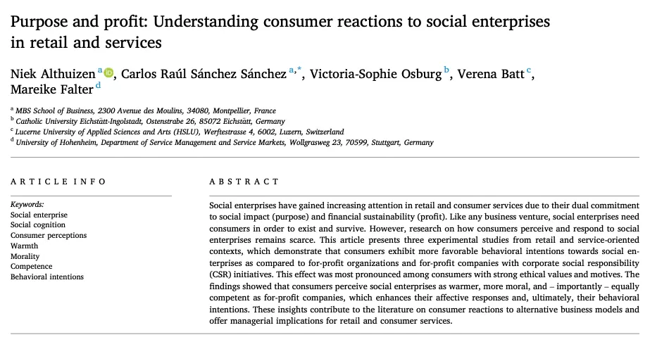 - Consumers see social enterprises and for-profit organizations as equally competent.
