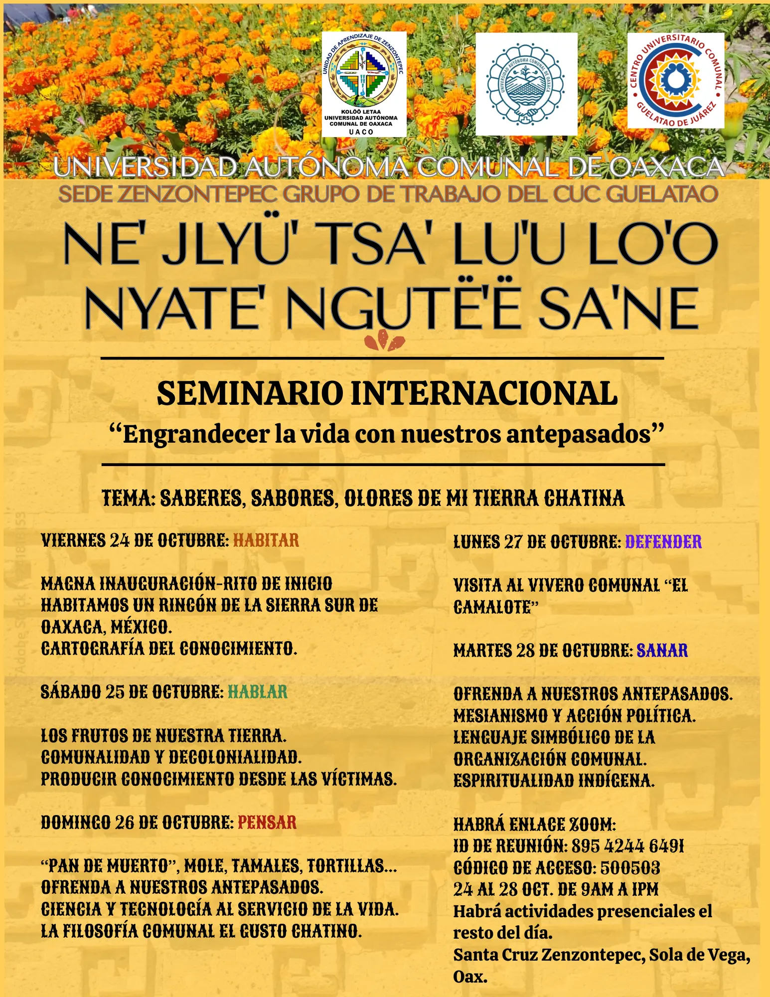 Der Leiter, Dr. Alejandro Castillo Morga, hat das Projekt einer kommunalen, staatlich anerkannten Universität, die indigenes Wissen mit dekolonialem Denken verbindet, am 03. Juni 2025 in einem Seminar an der KU vorgestellt, das als Kooperation zwischen dem Zentrum Religion, Kirche, Gesellschaft im Wandel und dem Zentralinstitut für Lateinamerikastudien stattfand. Das Seminar wird das Thema sinnlich vermittelter Wissensformen des Territoriums („Saberes, sabores y olores de mi tierra chatina“) mit der Fragestellung verbinden, wie Verständnis und Vollzug des Lebens durch die Beziehung zu den Vorfahren erweitert werden (Leitspruch: „Engrandecer la vida con nuestros antepasados“). Einerseits geht es um eine Reflexion und Konsolidierung der Methodik der Hochschule, die andererseits mit der Vorbereitung des Allerheiligenfestes bzw. des „Dia de los muertos“ verbunden wird, um sich angesichts der Probleme der Gegenwart der Gemeinschaft mit den Vorfahren zu vergewissern.