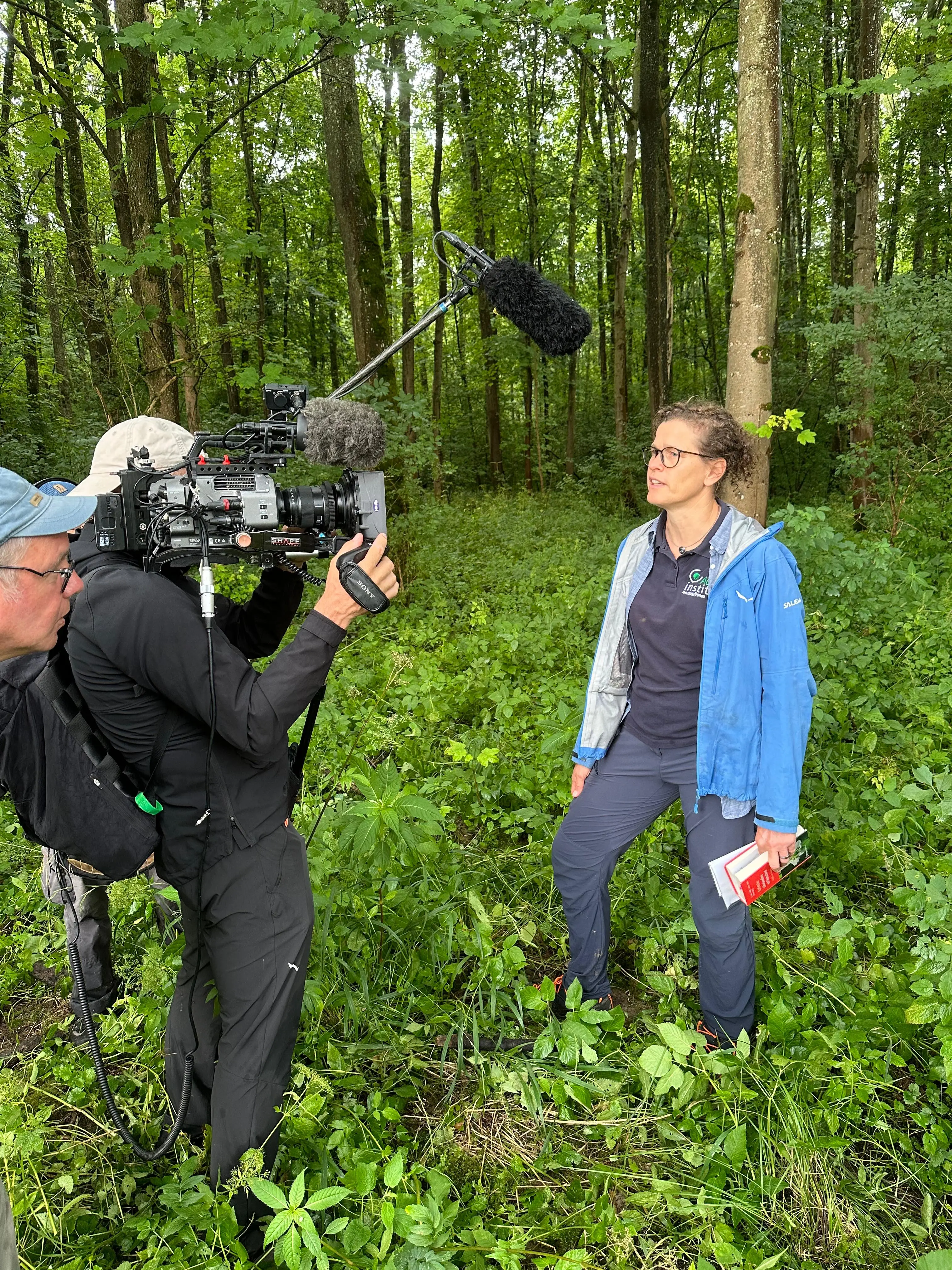 Dreharbeiten im Auwald mit Professorin Barbara Stammel