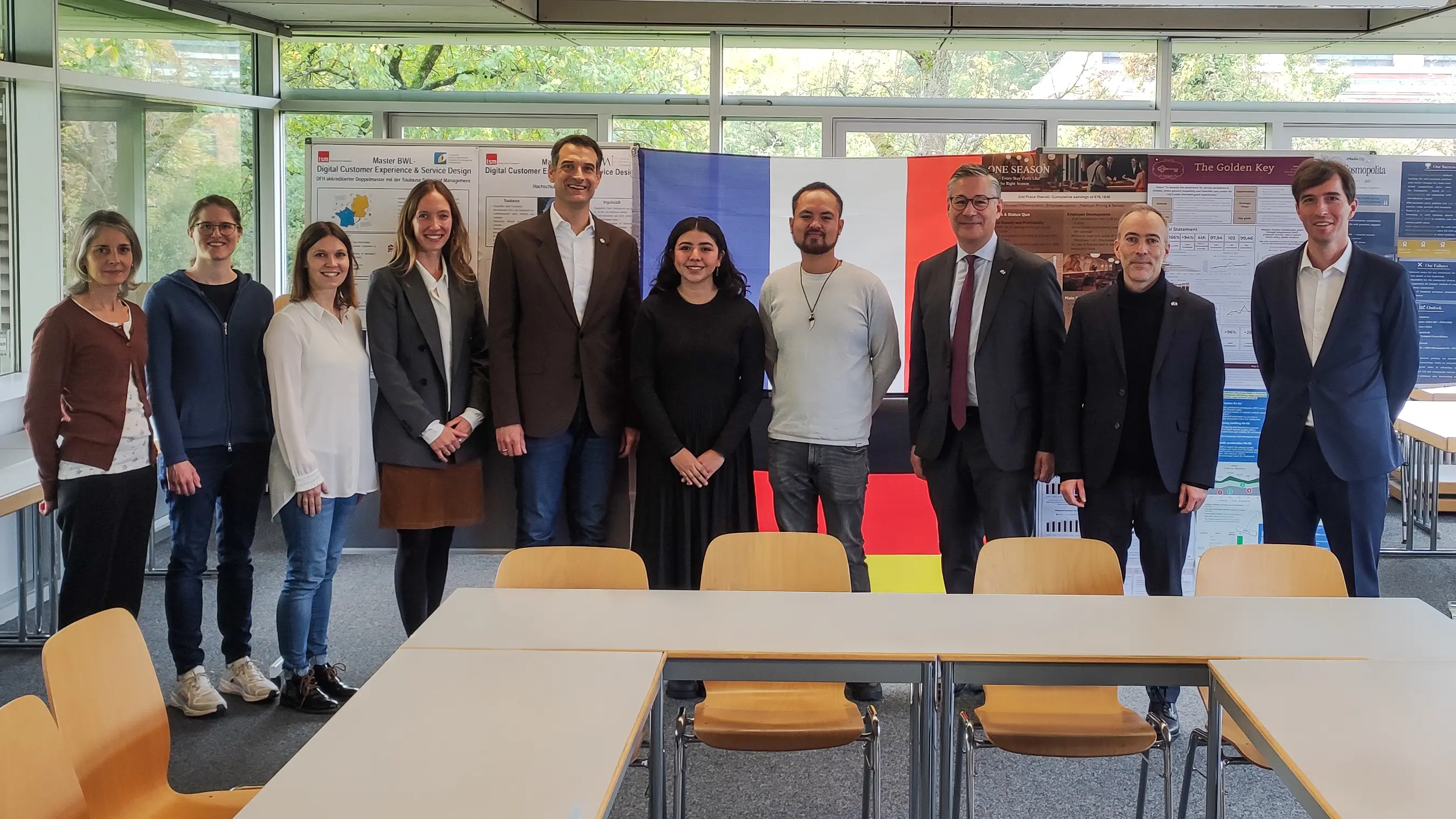 Zu den Vertretern der KU, die die Veranstaltung begleiteten, zählten unter anderem Prof. Dr. Jens Hogreve, Vizepräsident für Forschung und wissenschaftlichen Nachwuchs, sowie die wissenschaftlichen Mitarbeiterinnen und Doktorandinnen Louisa Schneider und Sandra Miederer, die die Doppelstudiengänge koordinieren. Auch Dr. Simon Märkl, Leiter des International Office am Campus Ingolstadt, und Franziska Rast, Referentin für Studienberatung und -koordination, nahmen an dem Treffen teil. Außerdem beteiligten sich Jade Alonso und Richard Makowski, Studierende des BWL-Masterstudiengangs Digital Customer Experience & Service Design, den die WFI zusammen mit der TSM anbietet, um ihre Erfahrungen zu präsentieren.