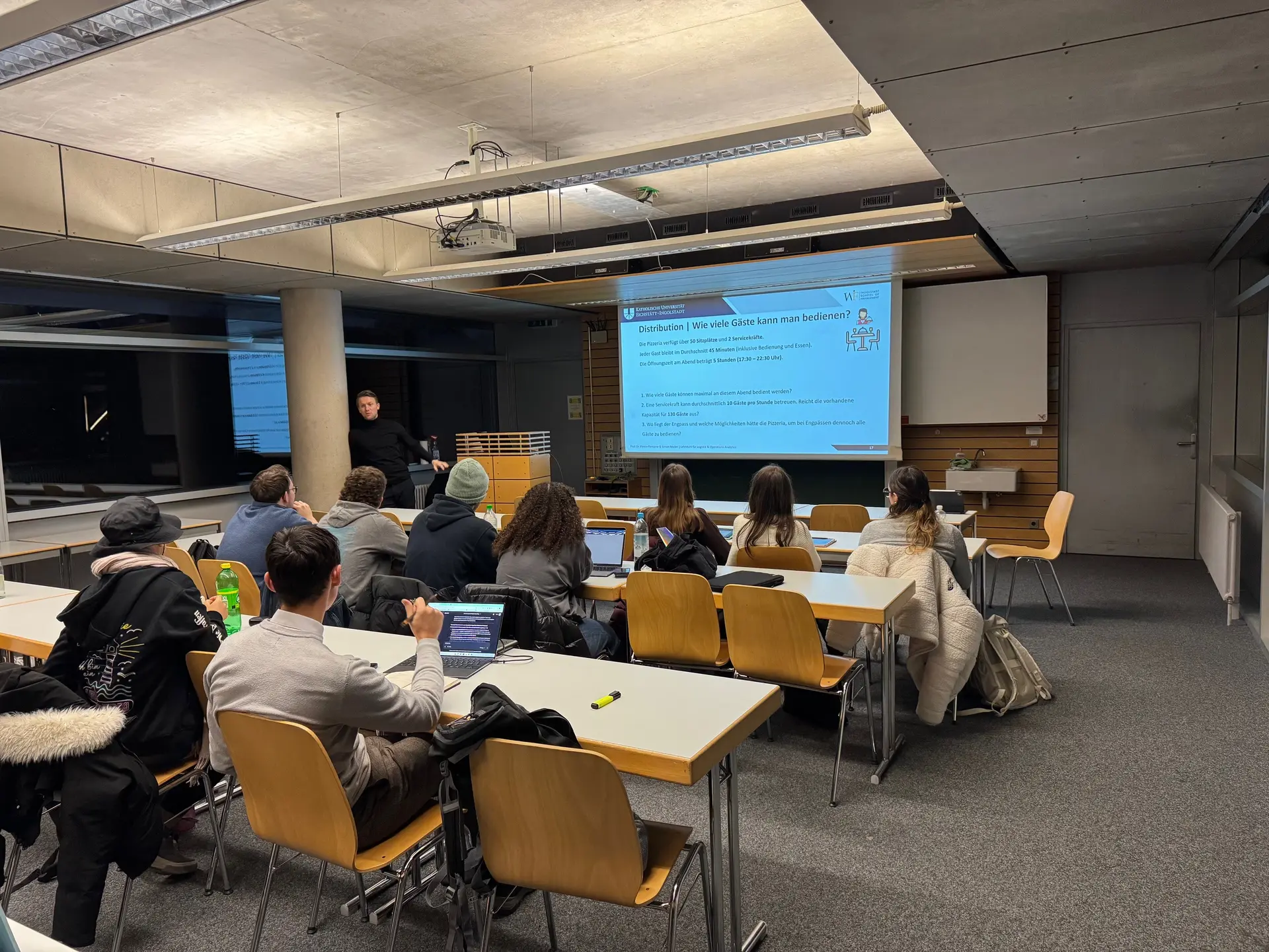 Die Studierenden diskutierten engagiert und entwickelten kreative Lösungen. Zum Abschluss durfte natürlich auch der praktische Test nicht fehlen. Daher ging es zum Abschluss noch gemeinsam in eine Pizzeria.